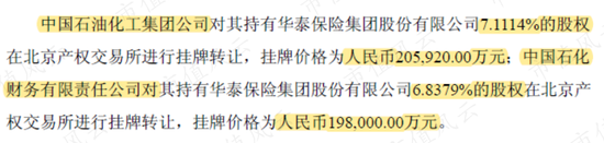 随后,2015年11月,华泰保险又有13.95%的股权被挂牌出售,合计金额40.39亿元。