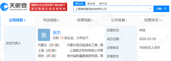 根据天眼查数据显示,珠海奥森的子公司、君正集团的孙公司——上海博森,是在2020年3月份刚刚成立的。