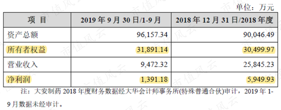 另外,2019年1-9月,大安制药的净利润只有1,391.18万元;2018年全年的净利润是5,949.93万元。潜台词是,大安制药存在全年业绩大幅下滑的风险。