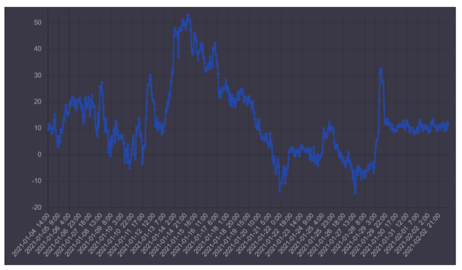 上一次发生这种情况的时间是12月29日,并且在过去五天中,这个指标一直保持在10,显示了风险之间的完美平衡,这意味着在2月5日到期之际,做市商和套利者没有动机以任何方式对比特币施加压力。