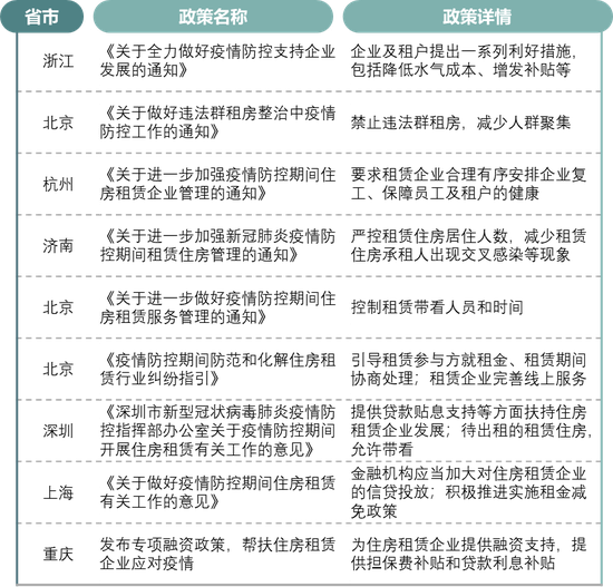 2020年,对长租公寓市场影响最大的两个字是疫情。疫情持续下,整个市场的需求受到了很大的影响,让原本就在“赔本赚吆喝”的长租企业盈利性持续下跌,资金也很难回笼。另外,租赁住房业务涉及到较多的人员流动,不规范的群租房还容易导致交叉感染。针对以上两方面的状况,多地政府出台了针对疫情的政策。对于疫情期间经营困难的企业、支付租金困难的租户等提供了相应的补助。对于疫情期间看房和人群聚集等也做了相应的规定,既保证交易可以正常进行,又很大程度上控制病毒的传播。