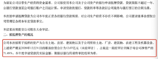 1月7日,贝因美发布公告,为弥补生产经营资金需要,拟抵押在建工程、土地、厂房、建筑物、机器设备等共计12.07 亿元资产向银行贷款。据公告,本次抵押资产占贝因美归母净资产的71.49%。值得注意的是,根据年报数据,2020年三季度贝因美总资产也仅为44.48亿元,本次抵押资产占总资产28.55%。