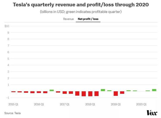 这是特斯拉连续第六个季度实现盈利,,并实现了自2003年成立以来的首个“盈利年”:特斯拉2020年营收为315.36亿美元,同比增长28%,全年净利润7.21亿美元,而2019年同期亏损为8.62亿美元。