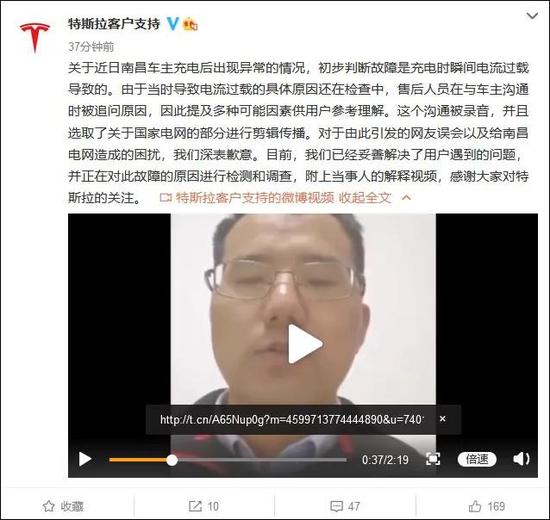 国网南昌供电公司澄清表示,特斯拉自用充电站有其特有的充电技术标准,特斯拉电动车是与特斯拉专用充电装置直接连接并使用,而非由电源线路连接特斯拉电动车;此外,在使用中电源线路电压稳定无异常,周边其他用电设备也都正常工作,符合国家规定的电源质量要求,对于相关不实言论保留追究权利。