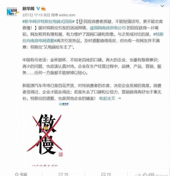随后,新华社点评道:“回应消费者质疑,不能轻描淡写,更不能态度傲慢。