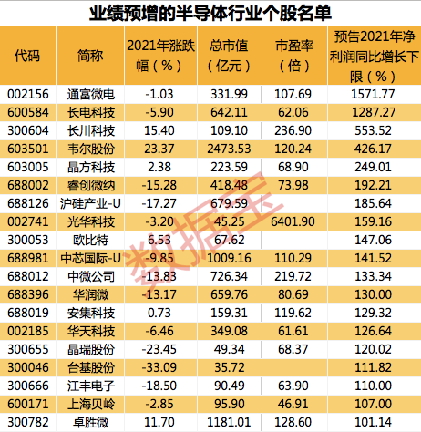 业绩高增的半导体概念股
