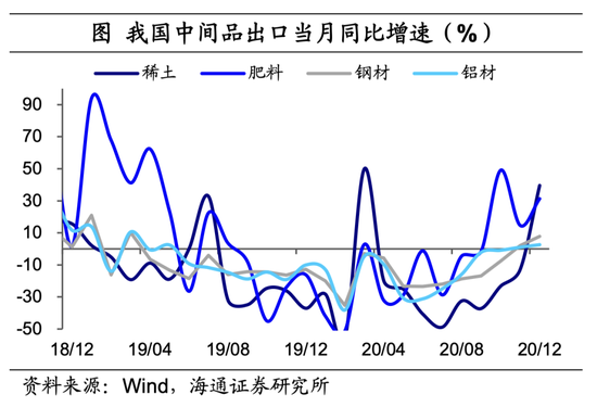 最后,海外生产恢复对我国出口的影响也在逐步显现。由于疫情之后,欧美发达国家大幅宽松,带动终端消费走强,也拉动我国消费品出口增速不断创出新高。但随着海外生产的逐步恢复,去年12月,我国主要出口商品中消费品的增速出现回落,而以机械器具、电机设备、钢铁为代表的资本品或中间品出口增速继续回升,以对接海外复苏的生产需求。若海外的生产修复延续,我国消费品出口的火爆局面也将部分向中间品或资本品类转移。
