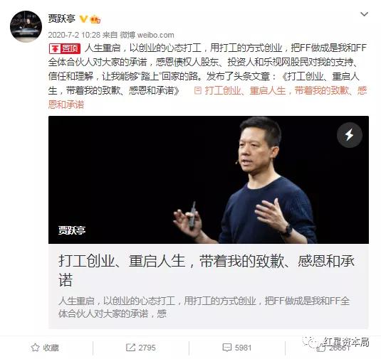 “与FF全体合伙人一起把FF做成、和回国推动中美双主场战略,依然是我人生下一阶段的核心使命。”在贾跃亭现在的置顶微博文章中,他是这样说的。