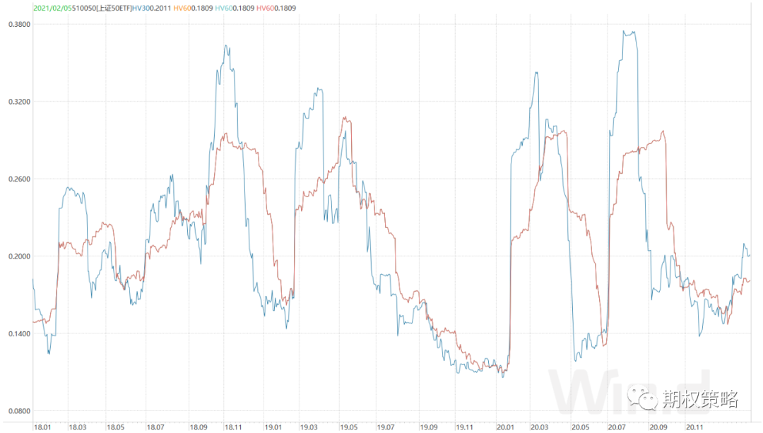 从标的波动率来看,沪市50ETF30日历史波动率微涨至20.11%,60日历史波动率走平至18.09%,仍处于近三年偏低位置。标的上涨,期权隐波微涨,沪市50ETF波指微涨至19.88%,300ETF波指微涨至20.31%。沪市50ETF2月平值认购隐波微跌至16.05%,认沽隐波微跌至19.51%。