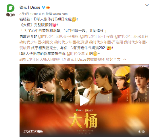 春节临近,各大公司纷纷发布贺岁微电影,近日德克士携手北京时代峰峻旗下Teens in Times时代少年团,在微博发布其新春贺岁片《大桶》。