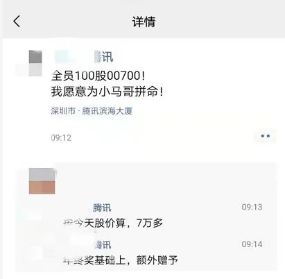 原标题:眼馋!腾讯员工年终奖加“鸡腿”:100股公司股票