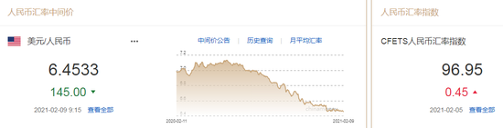 热点栏目2月9日,人民币中间价报6.4533,上调145点,上一交易日中间价报6.4678,在岸人民币上一交易日收报6.4583。