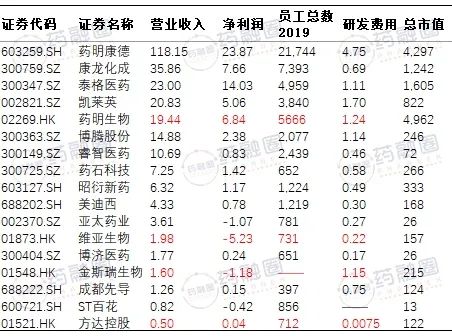 注意:红色部分是2020年中报,市值按照1月22日收盘价单位:亿元