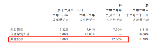 或许,是融资成本大幅下滑的缘故?事实上,期内银行借款加权平均利率为7.5%,较2019年底下降0.44个百分点,相当于每1亿元银行贷款,利息减少44万元。但其他贷款加权平均利率为12%,较此前同类贷款利率上升2个百分点。