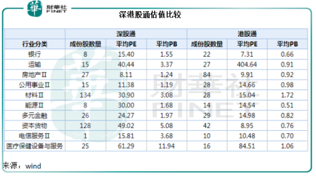 这主要与A股估值偏高有关。从下图可见,沪港股通中A股对应行业的市净率估值都相对偏高。