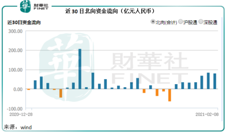 2021年2月9日(农历新年假期前的倒数第二个交易日),北向资金净流入规模明显收缩,由上一个交易日的105.99亿元,下降至64.23亿元。