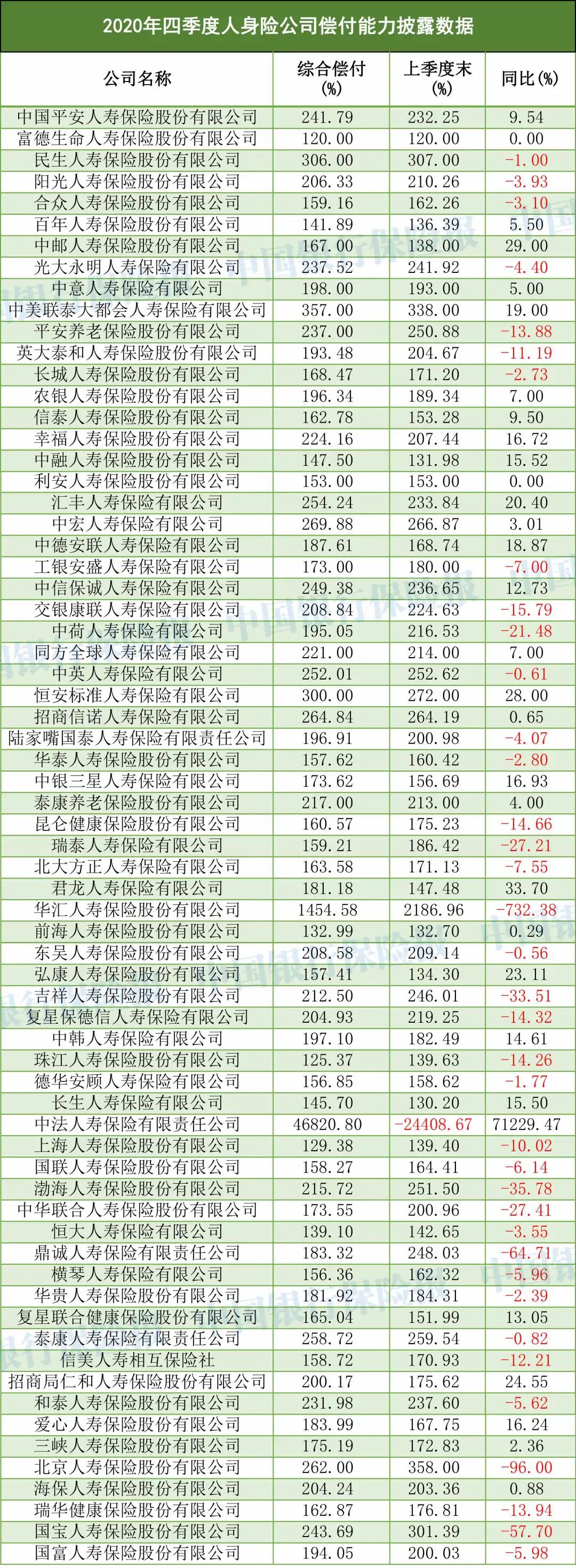 数据显示,2020年四季度,中法人寿核心偿付能力充足率及综合偿付能力充足率均为46820.8%,环比三季度的-24408.7%大幅增长。