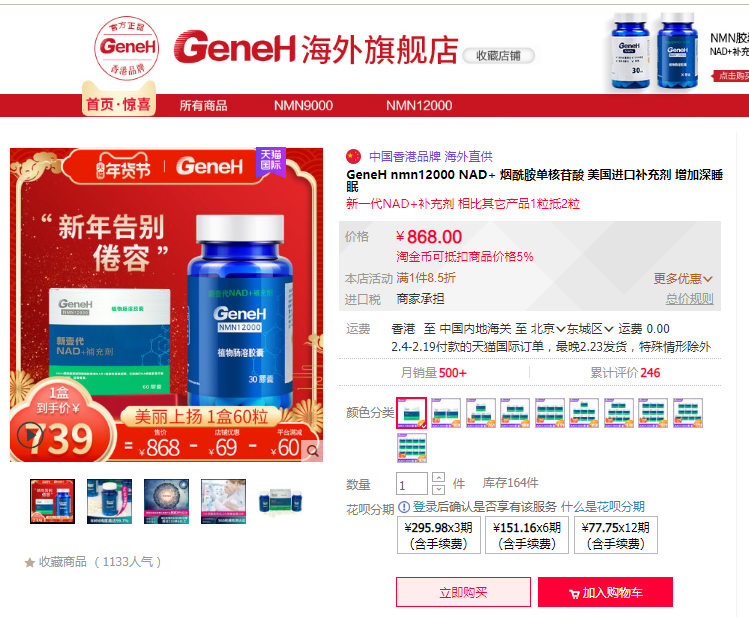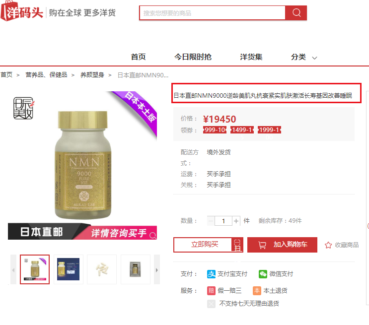 一直以来,NMN产品主要通过跨境电商进入中国市场。贝壳财经记者发现,在电商平台有下架NMN销售的情况下,整改中的NMN在跨境电商平台,也规范了宣传用语。