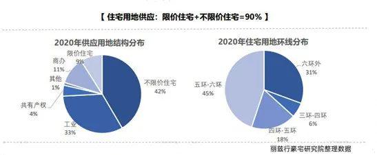 丽兹行2020年的报告显示 ,2020年,北京市住宅用地供应量为50宗,其中共有产权4宗,限价住宅8宗,不限价住宅37 宗,其他住宅用地1宗。2020年不限价住宅土地供应量、供应面积已突破近五年的最高值。