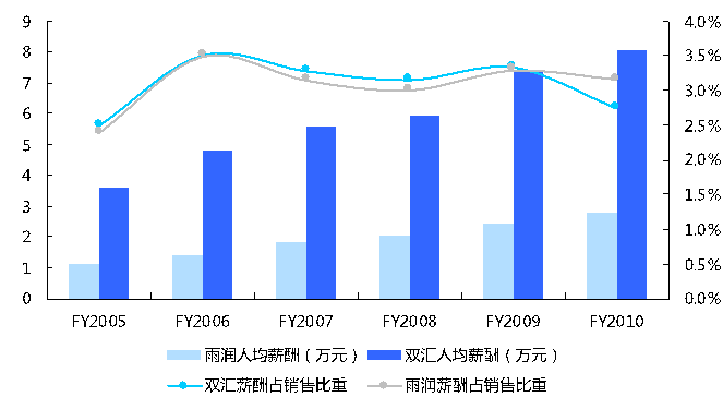 图 23:雨润和双汇整体的人工成本占比相差不大