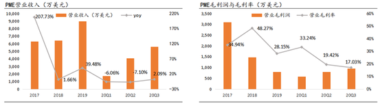 从收入端来看,受疫情爆发和产能收缩,公司营业收入在2020年前三季度的先降后升,环比持续好转,公司预计2020财年营业收入大约为8500万美元,同比下降5%左右。公司毛利率也有所下滑,主要与公司主动调整产品结构,同时部分渔船尚未作业没有产生营收,但已产生了渔船加油及其它相关营业成本,叠加疫情影响消费需求,导致同期渔获均价下滑,毛利率出现下滑的情况。