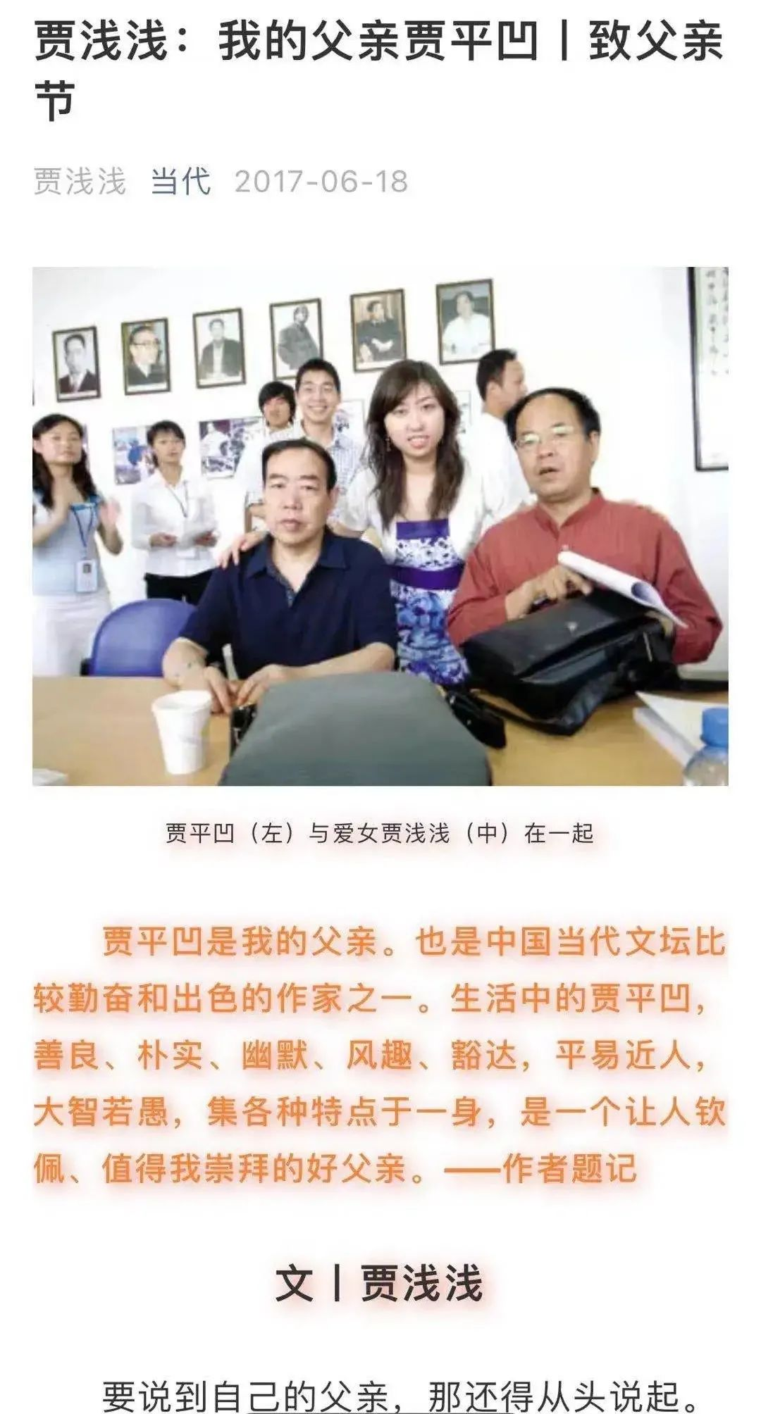 文章写道,“贾平凹的女儿贾浅浅爆红,背后是各路文学名家和诗人积极为贾浅浅的诗歌撰写评论,溜须拍马。”