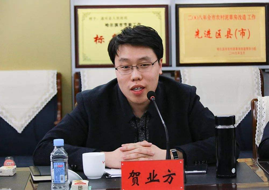 贺业方2004年考入清华大学化学工程系,本硕连读,2010年拿下清华大学化学工程系化学工程与技术专业硕士研究生学历。2010毕业后,贺业方留校工作,曾任清华大学招生办公室教师、主任助理。2011年,作为引进人才,挂职担任哈尔滨水务投资有限责任公司董事长助理、办公室主任。挂职结束后,2012年任清华大学招生办公室副主任(副处级),时年26岁。2013年,贺业方任哈尔滨市水务局水政水资源处副处长,次年任哈尔滨水务投资集团有限公司办公室主任。2015年,贺业方转任通河县政府副县长(正处级)。次年任通河县委常委、副县长。2018年任通河县县长,去年11月任穆棱市委书记。
