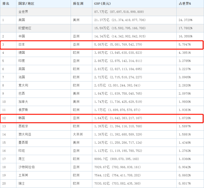韩国的GDP也有1.64万亿美元,排名第12,领先荷兰、瑞士等欧洲发达国家。