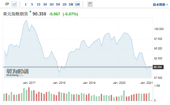 目前美元指数徘徊于2018年4月的低位,机构普遍的看法是,美联储宽松的政策基调及美国政府大规模刺激计划令美元不具备短期上涨的潜能,同时由此带来的通胀动力成为对大宗商品有利的“良性循环”。