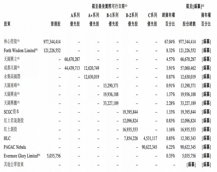此外,是各路资本。其中,天图实体持股13.05%,PAGACNebula持股6.22%(PAG),SGGC实体(SCGC资本、红土创投及红土君晟创投)持股3.32%,永乐高国际(由独立第三方 Wang Xinting最终控制)持股0.87%,HLC持股0.85%。
