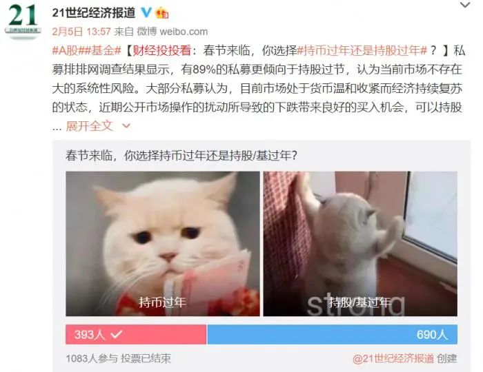 在持币过年还是持股/基过年的老问题上,今年多数网友在投票中选择了后者,显示出对节后市场的乐观情绪。不过也有网友无奈表示:“持仓,别问为啥,问就是被套住了。”