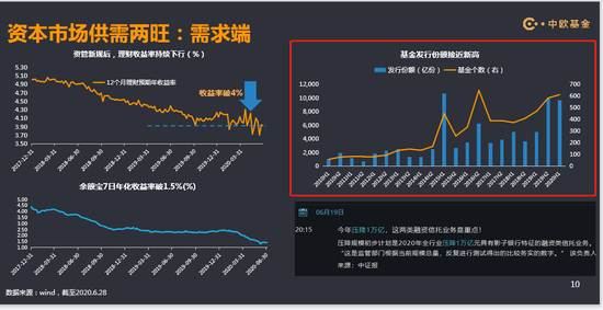 从需求端来看,无论是资管新规打破刚兑,还是市场利率中枢慢慢下移,实际上居民端的财富,未来从银行理财产品或者说整个存款大池子,逐步往权益资产转移。权益资产配置比例会提升,我们认为这是一个大趋势。