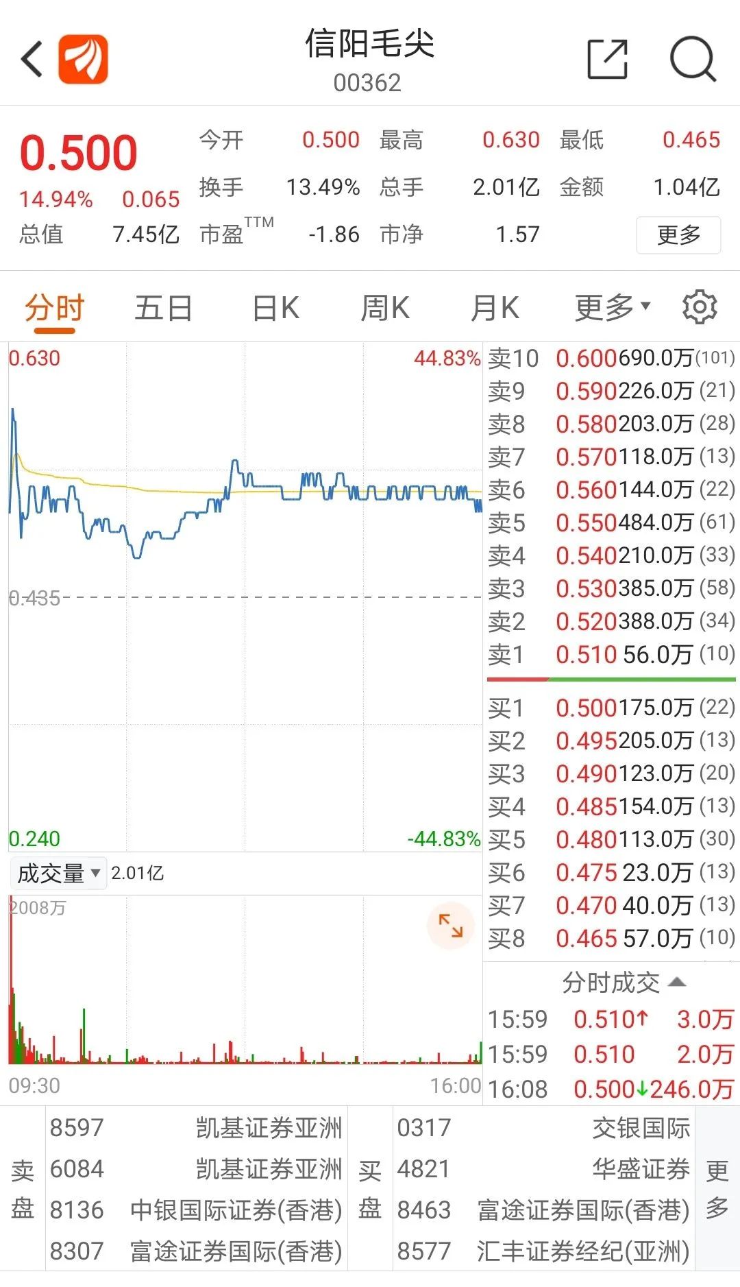 网友的揣测无从证实,但信阳毛尖的股价却是实实在在上涨。2月17日信阳毛尖自港股开市便出现大涨,截至记者发稿时止,信阳毛尖股价大涨14.94%。