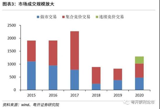 截止2020年底,新三板市场成交金额合计1294.64亿元,其中做市交易477.20亿元、集合竞价交易543.54亿元、连续竞价交易273.89,成交规模较2019年有明显提升。