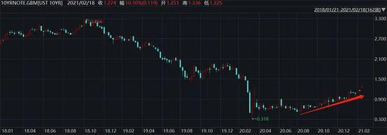 在春节期间,全球通胀交易正在兴起,风险资产大涨而债市走弱。