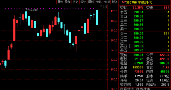 今日另一引人关注的是创业板权重股全线回调,前10大权重股集体下跌,千亿以上市值的16只个股中,仅温氏股份微涨4分钱,其余全部绿盘。市值“一哥”宁德时代大跌5.26%,而智飞生物、康泰生物更是大跌超10%。