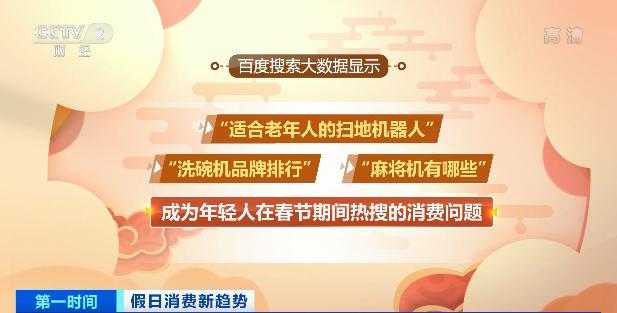 远程关爱父母、拥抱智慧生活,成为今年春节消费的新主题。百度搜索大数据显示,“适合老年人的扫地机器人”“洗碗机品牌排行”“麻将机有哪些”等问题,成为年轻人在春节期间热搜的消费问题。