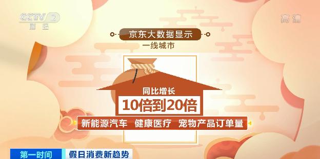 从量的增长到质的提升,这个春节,百姓的消费清单也更加丰富,品质消费成为时尚。京东大数据显示,春节期间,在一线城市,新能源汽车、健康医疗、宠物产品订单量同比增长10到20倍;在三四线城市和乡镇,智能家电、手机电脑的清洗、维修、换新服务同比增长20到30倍。