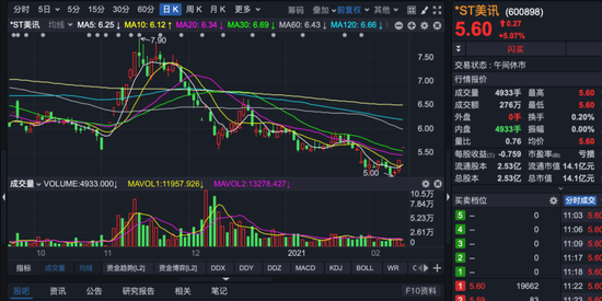 2月18日早间一开盘,*ST美讯以涨停开盘。前一个交易日2月10日,*ST美讯则是尾盘冲上涨停之位。