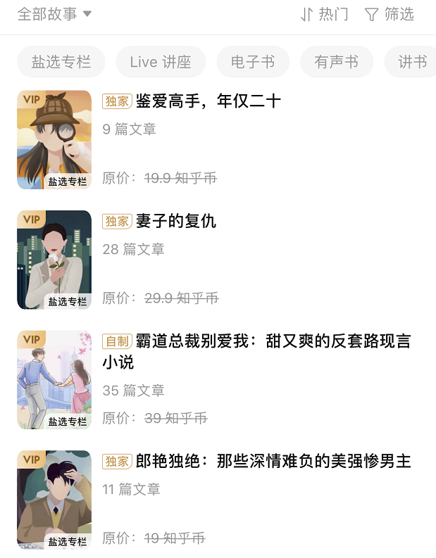 发现商业机遇的知乎,将这一略显意外的用户偏好,整合进如今的盐选专栏。