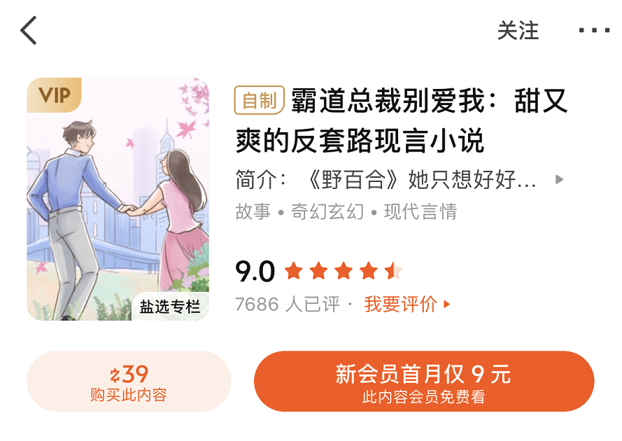 一位昵称叫“柠檬精ii”的盐选会员在《霸道总裁别爱我:甜又爽的反套路现言小说》下留言称:“看到了一半的时候,我怎么感觉到了晋江风。”其实,知乎网文和晋江小说有一定的相似处。
