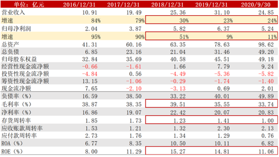 从上图可以看到,2020年三季度,晶盛机电营收、归母净利润增速分别为24%、11%,据其业绩预告,2020年全年预计实现归母净利润7.97亿元-9.56亿元,比上年同期增长25%–50%。