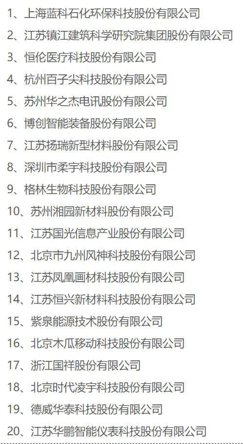 附:2021年1月31日被抽中实施现场检查的20家创业板/科创板申报企业名单