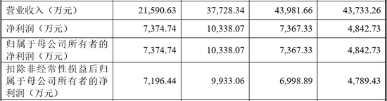 2017年、2018年、2019年及2020年上半年,公司营业收入分别为4.37亿元、4.40亿元、3.77亿元及2.16亿元,扣非归母净利润分别为0.48亿元、0.70亿元、0.99亿元及0.72亿元。