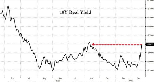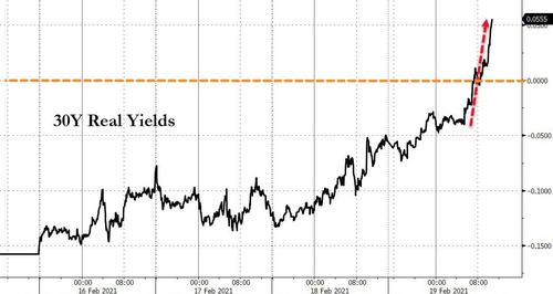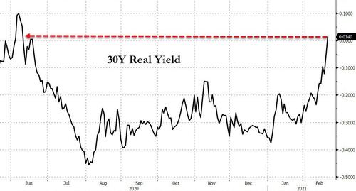 此外,美国10年期和30年期国债的实际收益率也在飞涨,其中30年期国债实际收益率飙升至自6月以来首次突破0%,并飙升至2020年3月以来的最高水平。