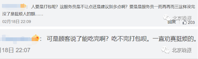 蔡超杰介绍,引导顾客合理点餐是他们的一项服务流程。从顾客落座,服务员就会向顾客介绍店内有小份锅底和半份菜,让顾客能够明白消费,避免浪费。“这位服务员当时只是在按照公司的服务流程进行服务,毕竟大家都不希望看到浪费在自己的店里发生。”