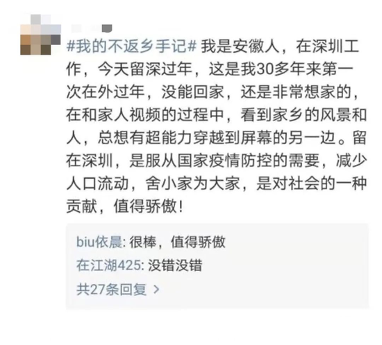 大家深有同感的,是第一次不返乡对家乡的想念,更是这次“就地过年”的底层逻辑——防控疫情,为了更多人的健康平安。