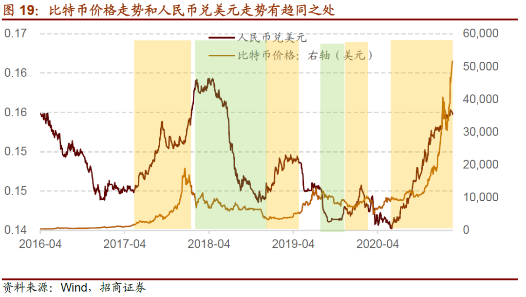 ⚑A股与比特币:类似比特币,人民币资产能一定程度对冲G7货币超发,A50指数期货与比特币相关性高。但比特币是较为纯粹的反映流动性的品种,其价格变化对A50具有一定的领先效果,2017年以来比特币多次提前预测了A50指数的大跌。