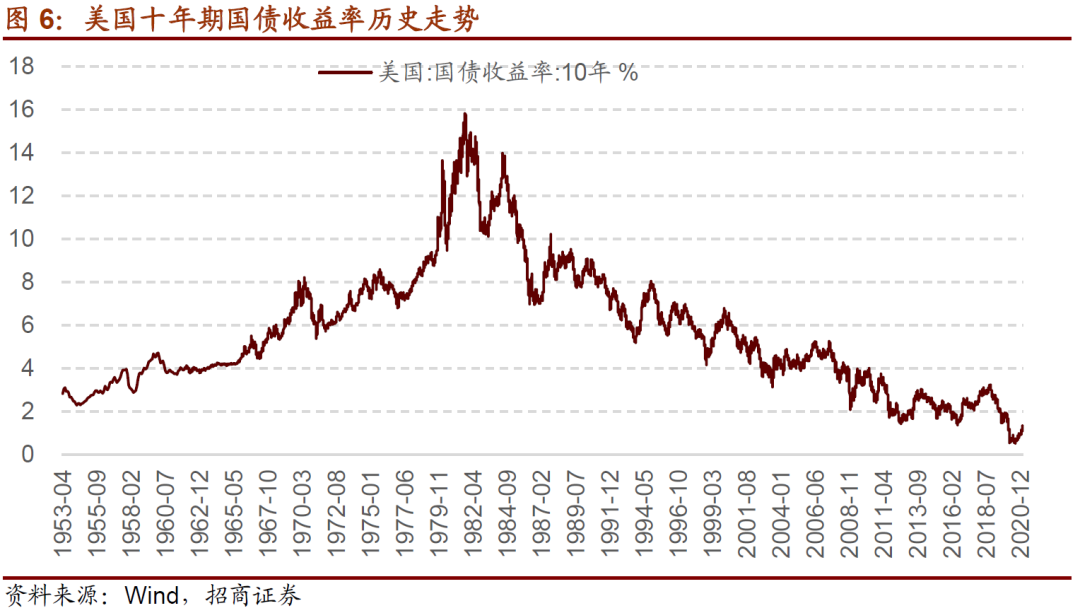 在前文我们描述了,当调整后的美债收益率突破1%,就会触发全球资本市场风险。本报告发布之日的美债收益率绝对水平是1.34%,调整后收益率为0.04%,由负转正,这表明美债收益率上行的风险正在加速集聚,但是尚未到危险水平。本次美债收益率进入危险区域,对应调整后的美债收益1%,绝对水平是2%。换言之,当十年期美债收益率突破2%,将会进入风险临界点。
