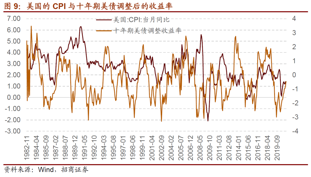 由于美国十年期国债名义利率需要对通胀进行补偿,因此十年期美债收益率趋势也反映通胀预期。